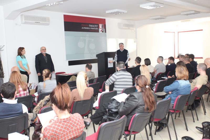 Na Pravnom fakultetu za privredu i pravosuđe 14. maja 2014. godine održana je tribina na temu „Zakonski okvir I praksa Direkcije za upravljanje oduzetom imovinom“. Gost predavač bio je gospodin Vladimir Ćeklić, pomoćnik direktora Direkcije za upravljanje oduzetom imovinom, dok je moderator predavanja bio prof dr Zoran Pavlović, šef krivičnopravne katedre.