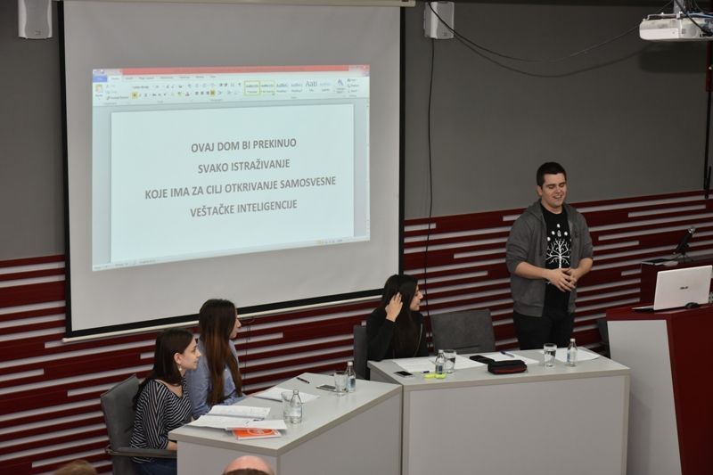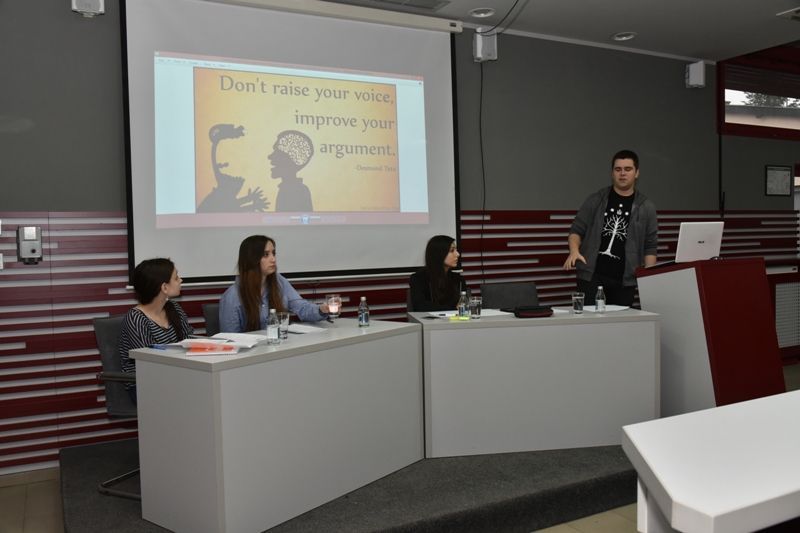Kako bi studentima približili pravila i način debatovanja prvaci svetskog univerzitetskog debatnog prvenstva – Teodora Rešetar, studentkinja Filološkog fakulteta u Beogradu i Miloš Marjanović, student Pravnog fakulteta u Beogradu - podelili su u petak, 24. februara 2017. godine sa studentima Pravnog fakulteta svoja iskustva sa takmičenja u Holandiji, gde su u finalu debatovali sa studentima iz Nemačke, Kine i Indonezije i održali prezentacionu debatu na temu: „Ovaj dom bi prekinuo svako istraživanje koje ima za cilj otkrivanje samosvesne veštačke inteligencije“ protiv tima sa Fakulteta političkih nauka iz Beograda – Marte Vasić i Aleksandre Mihajlović. Pobednika su izabrali prisutni studenti.