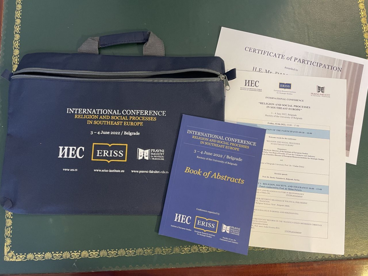 U svečanoj sali Beogradskog rektorata 3. i 4. juna održana je prva međunarodna konferencija po nazivom: “Religion and Social Processes in Southeast Europe” koju su organizovali Pravni fakultet za privredu i pravosuđe, Institut za Evropske studije Beograd i Evropski institut za strateške studije iz Ljubljane.