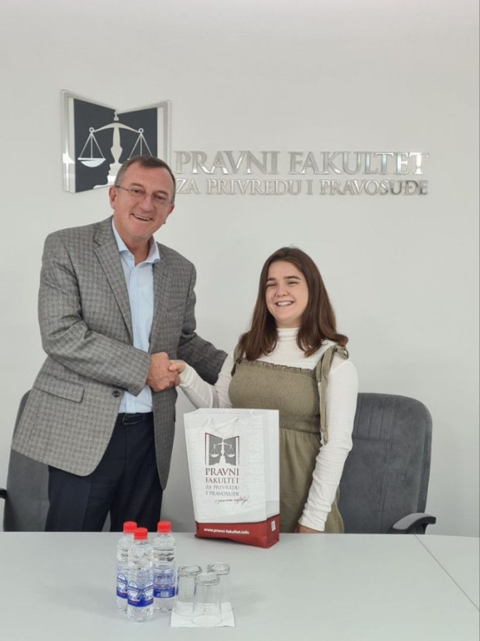 Studentkinji je uručen prigodan promotivni poklon Pravnog fakulteta za privredu i pravosuđe sa nadom da će najlepše utiske poneti sa Fakulteta, kako je i sama napomenula.