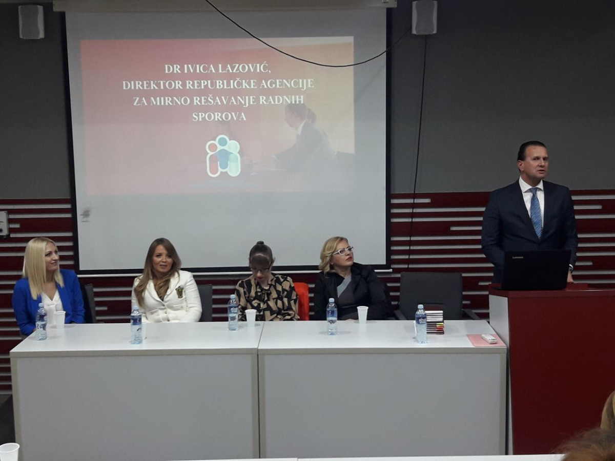 Nakon toga, studentima i studentkinjama se obratio i održao predavanje dr Ivica Lazović, direktor Republičke agencije za mirno rešavanje radnih sporova.