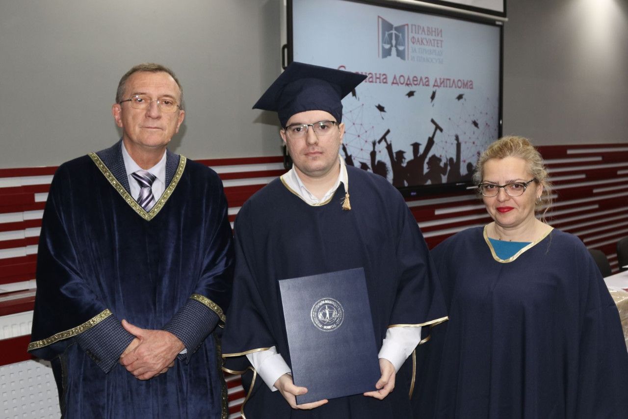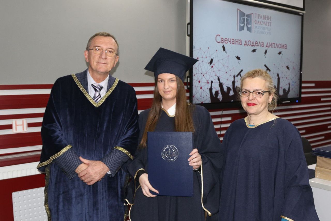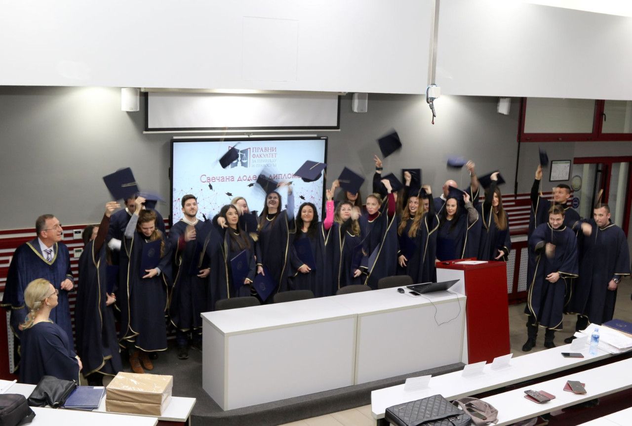 Nakon intoniranja univerzitetske himne „Gaudeamus Igitur“, diplomirane pravnike i njihove roditelje i prijatelje pozdravio je dekan fakulteta prof. dr Milan Počuča koji im je čestitao na uspešno završenim osnovnim akademskim studijama. Naglasio je da je iza njih dug i nimalo lak put koji su oni uspešno prešli, kao i da njihovi roditelji treba da budu ponosni.