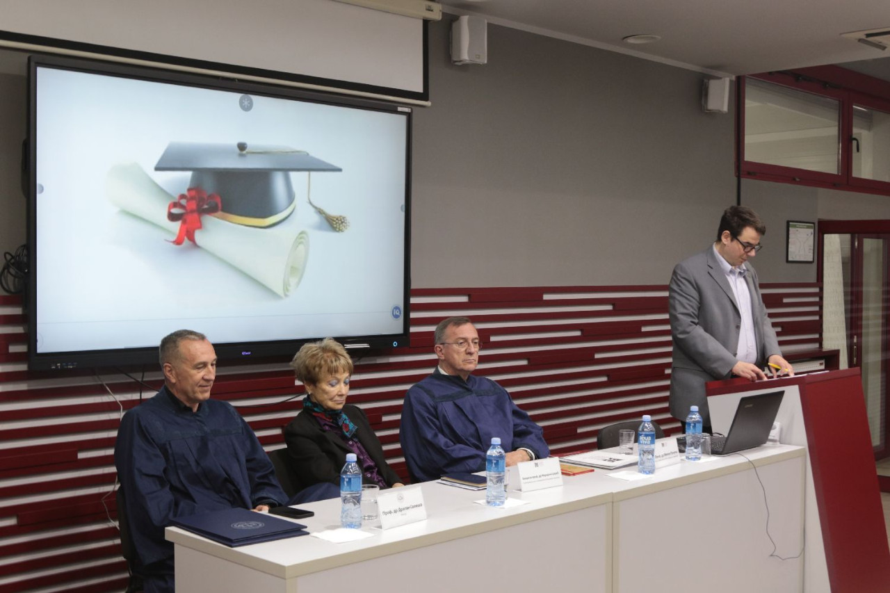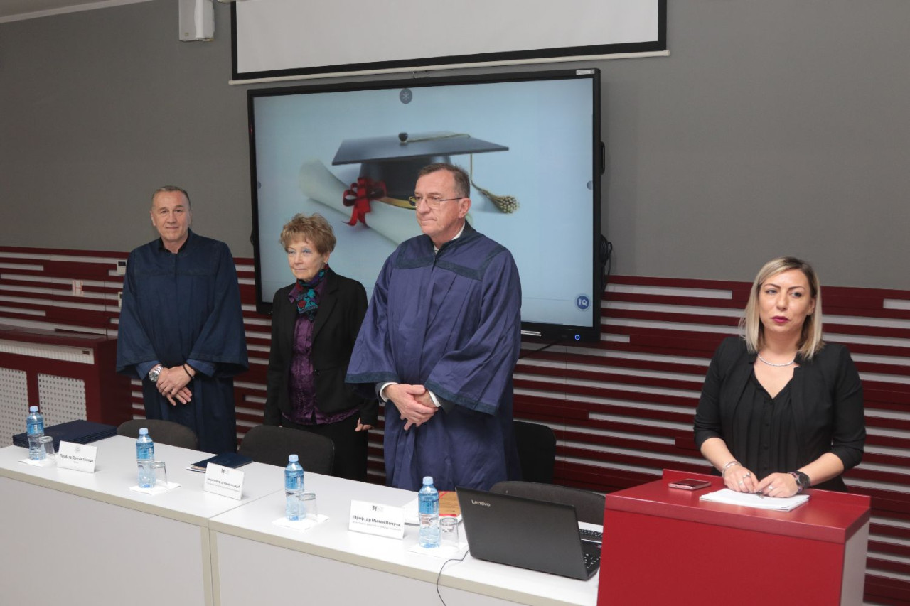 Sve prisutne pozdravili su prof. dr Marijana Carić, predsednica Saveta univerziteta, rektor Univerziteta Privredna akademija u Novom Sadu, prof. dr Dragan Soleša i prof. dr Milan Počuča, prorektor za nauku Univerziteta Privredna akademija i dekan Pravnog fakulteta za privredu i pravosuđe u Novom Sadu. Svakog kandidata, kao i naučne doprinose disertacija, predstavili su njihovi mentori. Nakon predstavljanja rektor Univerziteta, prof. dr Dragan Soleša, svečano je uručio diplome i promovisao kandidate u doktore nauka.