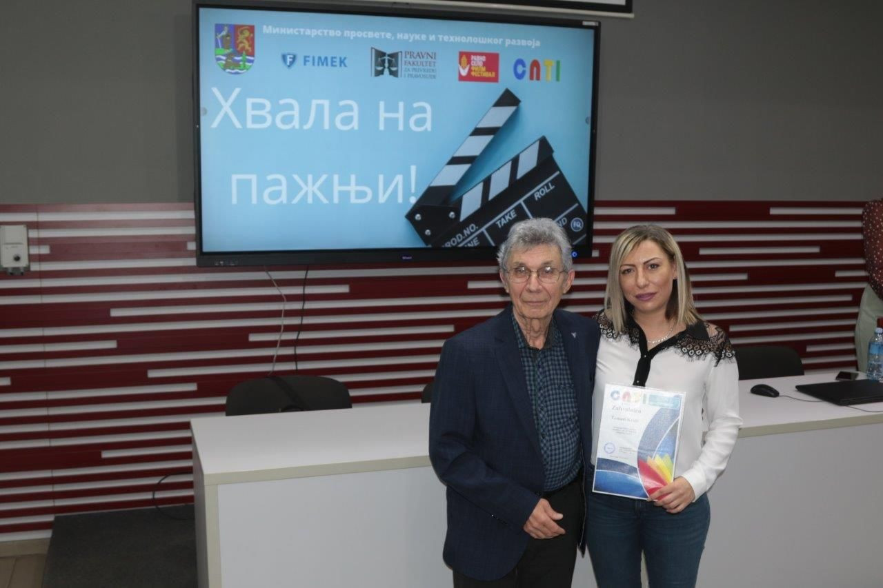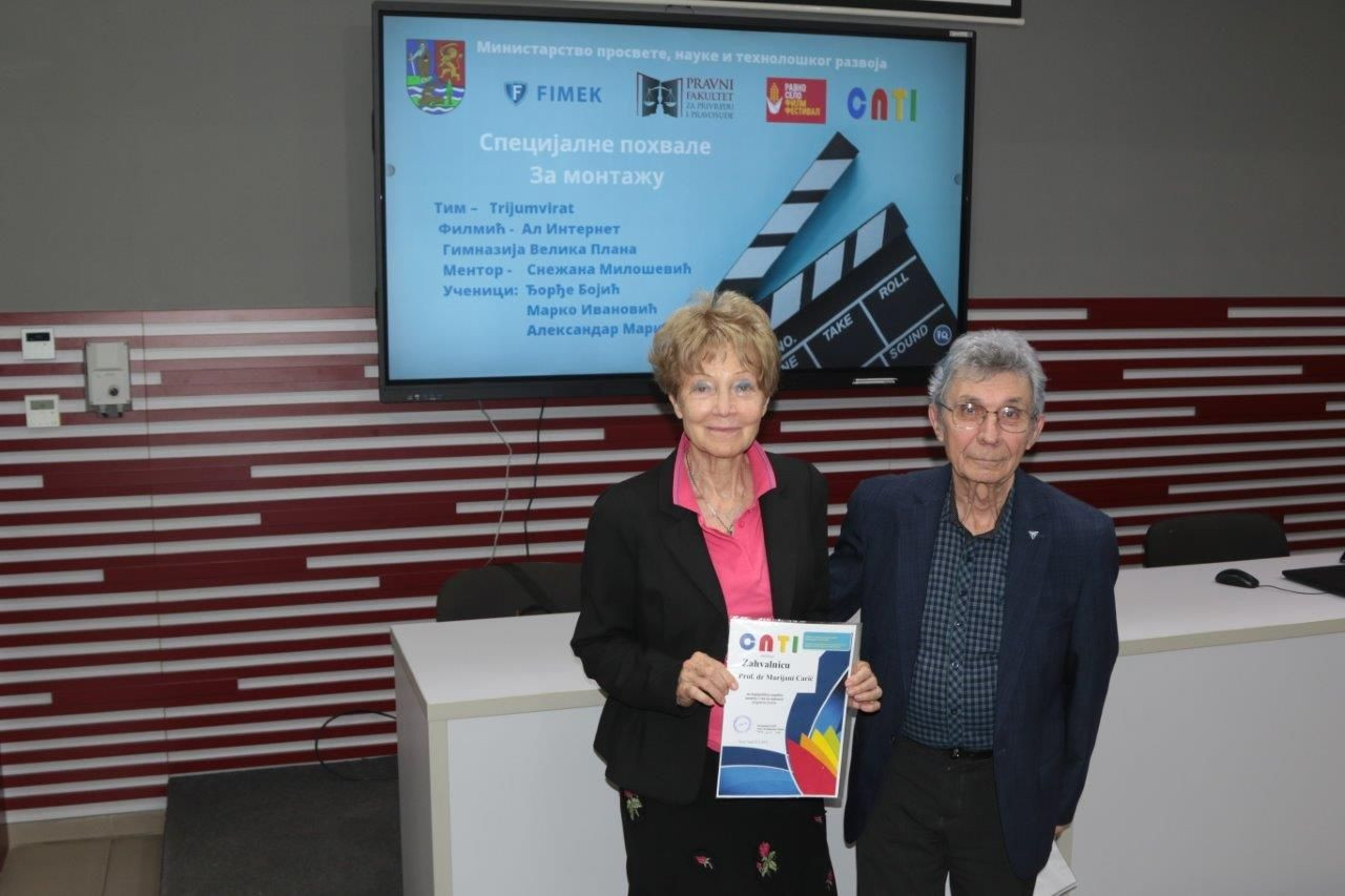 Prof. dr Slobodan Popov, ispred Centra za razvoj i primenu nauke, tehnologije i informatike, koji je ujedno i realizator ovog takmičenja, posebno je istakao poruke koje šalјu nagrađeni filmići kao odgovor na ponuđene teme viđeno očima učenika. On je dodelio i nagrade, specijalne pohvale, za ideju i scenario. Nagrade za režiju i montažu dodelila je Jasmina Pastonjicki.