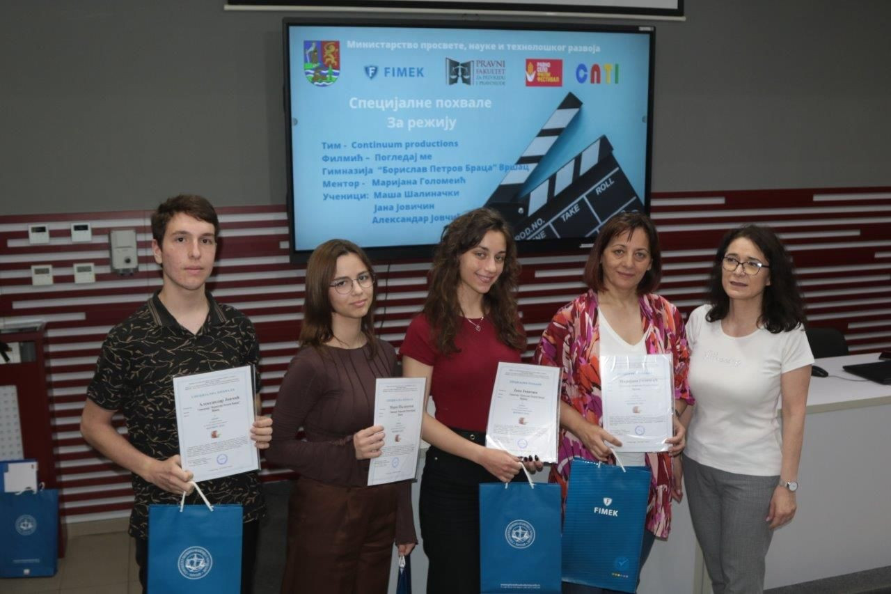 Najbolјi radovi 12 filmića (osnovne i srednje škole), kao i njihovi mentori nagrađeni su nagradama koje su obezbedili Fakultet za ekonomiju i inženjerski menadžment i Pravni fakultet, Univerziteta Privredna akademija.