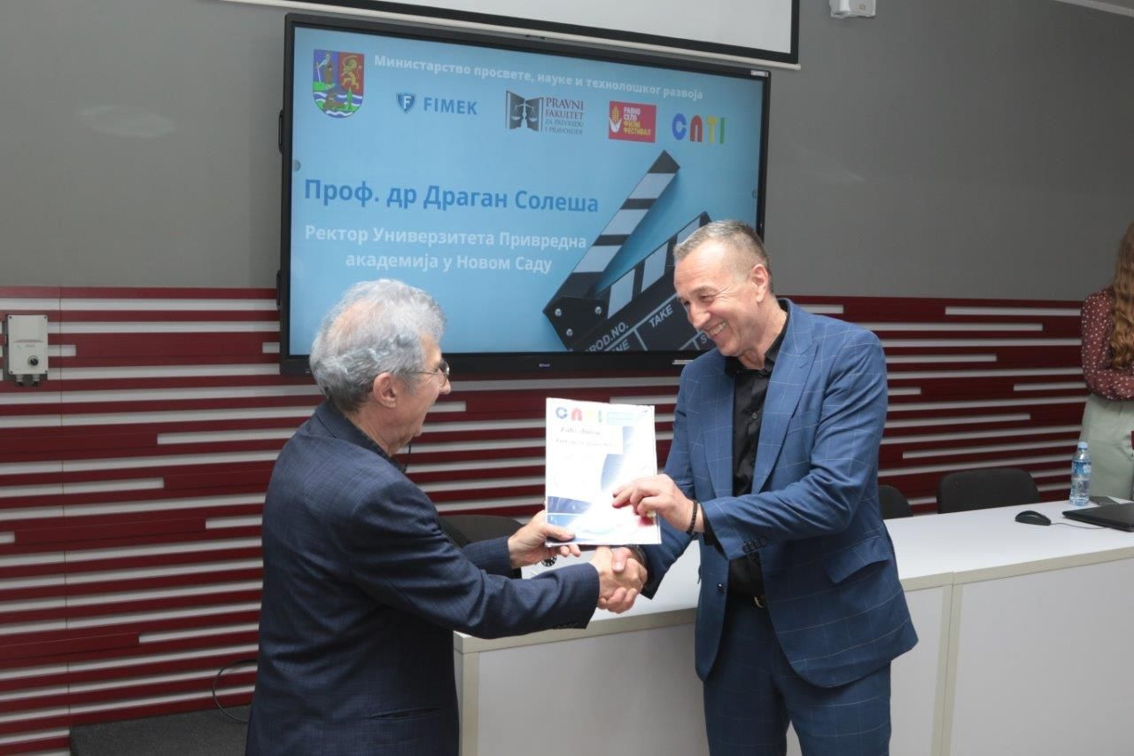 Na kraju manifestacije, prof. dr Slobodan Popov, svečano je dodelio zahvalnice za uspešnu dugogodišnju saradnju predsednici Saveta Univerziteta Privredna akademija Prof. dr Marijani Carić, Prof. dr Draganu Soleši, rektoru Univerziteta Privredna akademija u Novom Sadu, kao i direktorici marketinga Tamari Krstić.