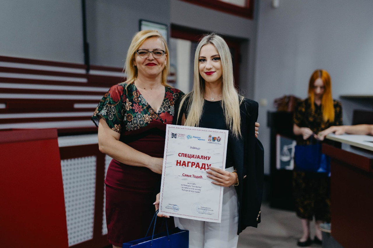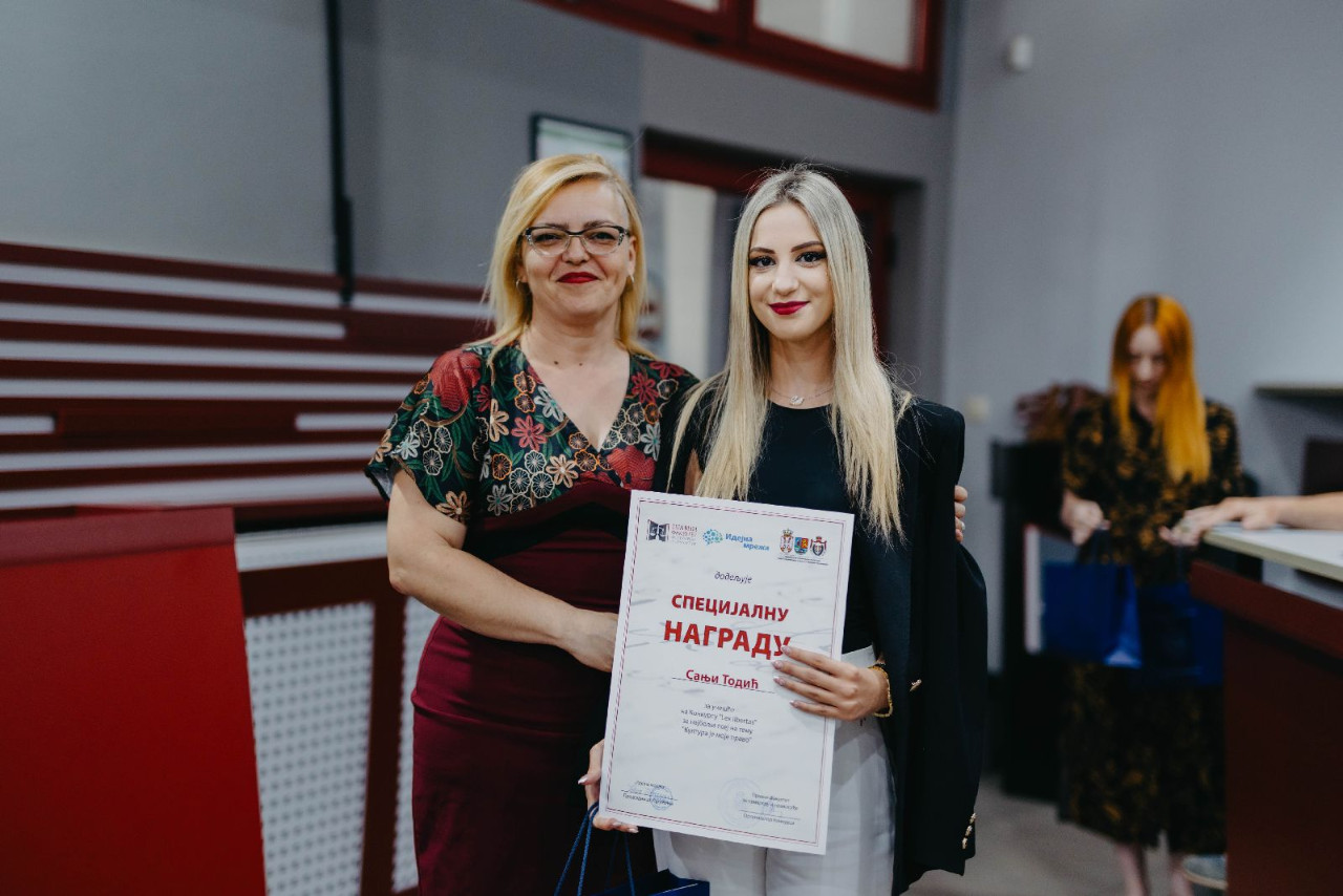 U kategoriji studenata Pravnog fakulteta za privredu i pravosuđe prvo mesto osvojila je Biljana Milenković, studentkinja četvrte godine, na drugom mestu našla se Jana Zečević, dok je treće mesto zauzela Mirjana Korov. Specijalne nagrade uručene su: Jeleni Mladenović, Uni Vukadinović i Sanji Todić, a specijalne pohvale Stefanu Tasiću, Tamari Filić, Petru Pavloviću, Nebojši Vukovu i Anastasiji Tasić. U kategoriji maturanata najbolji esej napisala je Jelena Žakula iz Nadalja, drugo mesto je osvojio esej Maše Stojanović, dok je treća nagrada otišla u ruke Koste Petrovića.
