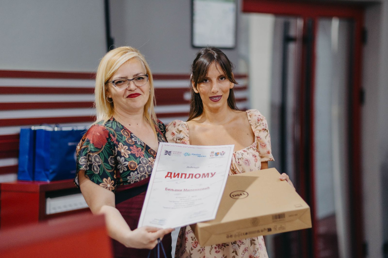 Pobednici su osvojili sjajne nagrade! U prvoj kategoriji I (studenti) nagrada je bila Laptop, II - Tablet, a III - 10% popusta na školarinu ili 150 evra u dinarskoj protivvrednosti po srednjem kursu Narodne banke Srbije. U drugoj kategoriji (maturanti) I nagrada je iznosila 50% popusta na školarinu, II - 40% popusta na školarinu, III nagrada - 30% popusta na školarinu, s tim da je maturantima pružena prilika da umesto popusta na školarinu dobiju novčanu nagradu.