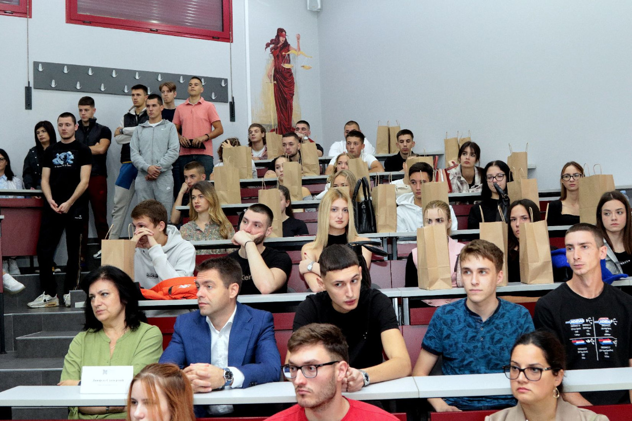 U amfiteatru Pravnog fakulteta za privredu i pravosuđe 2.10.2023. godine održan je svečani prijem brucoša. Studente je pozdravio dekan, prof. dr Milan Počuča, kao i prof. dr Sanja Škorić, prodekanka za nastavu, prof. dr Marijana Mladenov prodekanka za međunarodnu saradnju i prof. dr Jelena Matijašević, prodekanka za nauku.