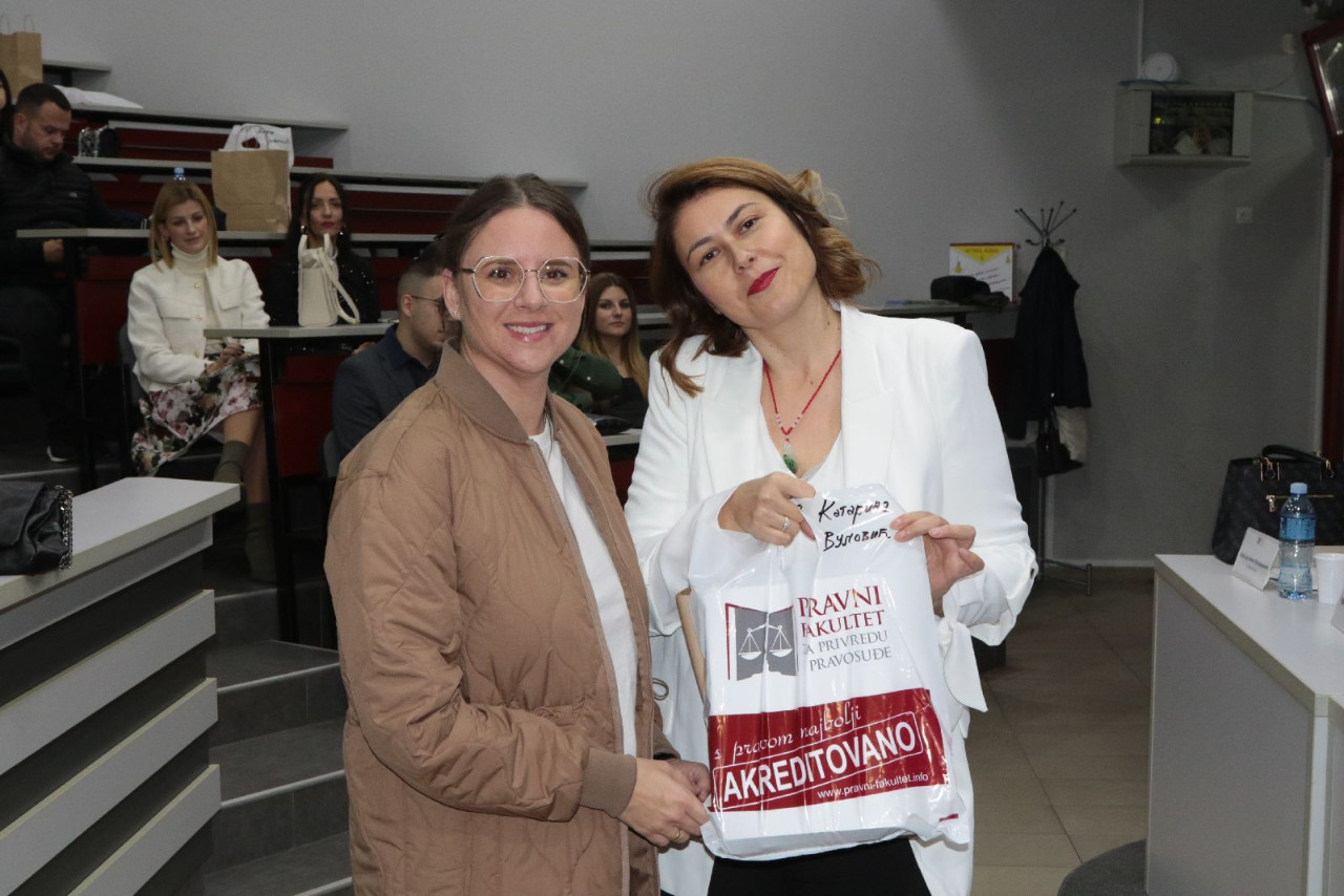 Nakon toga, studentima su se obratile dve alumnistkinje Pravnog fakulteta za privredu i pravosuđe u Novom Sadu: Tatjana Žuža, Viša savetnica za odnose sa državnim institucijama u kabinetu guvernera NBS i Dijana Lukić, HR menadžerka u kompaniji GLOBALCOM.