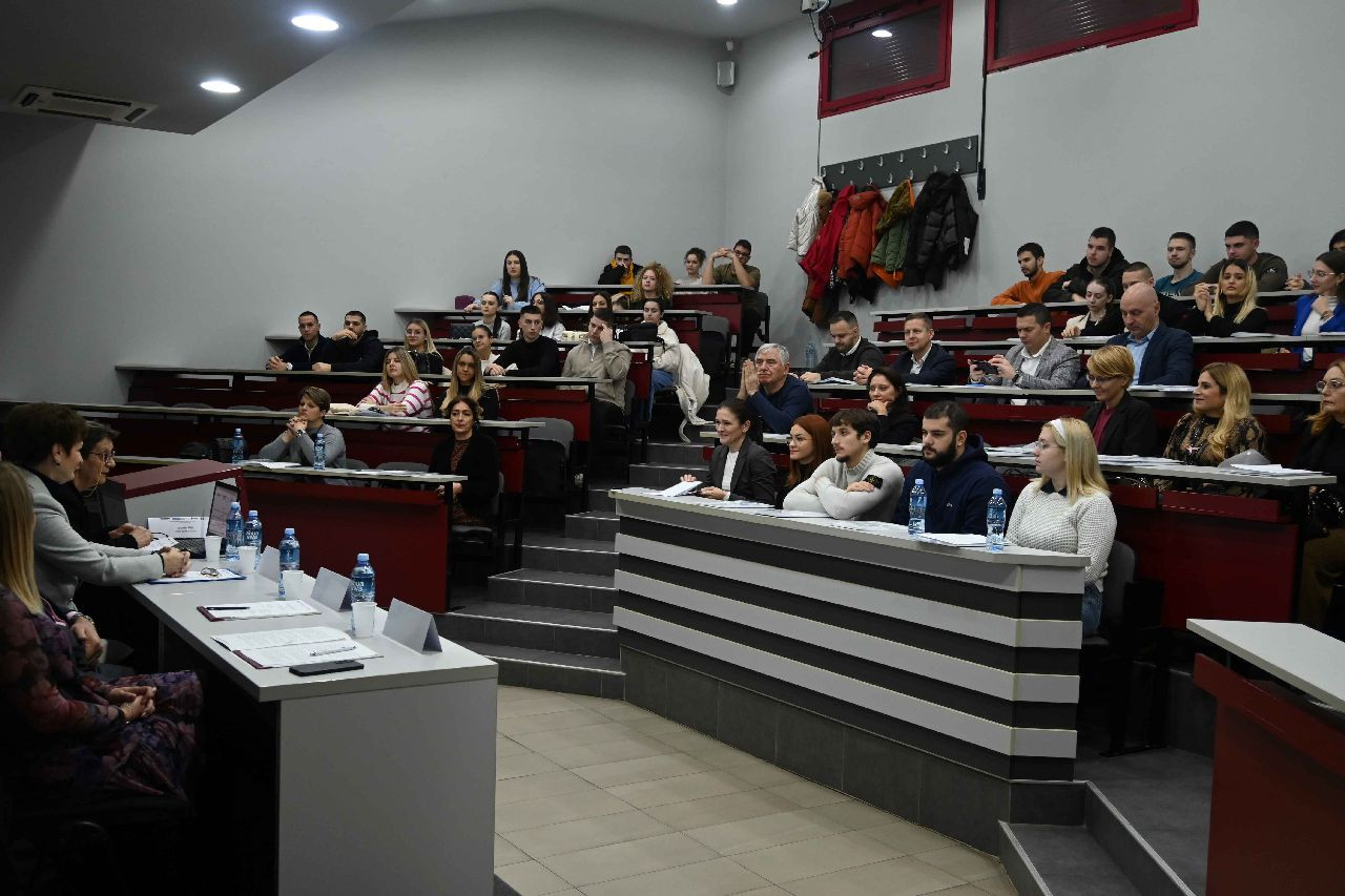 Ispred Fakulteta obratila se prof. dr Marijana Mladenov, prodekanka za međunarodnu saradnju i istakla je da Pravni fakultet za privredu i pravosuđe od 2011. godine analizira, istražuje uticaj Arhuske konvencije na domaće zakonodavstvo, te da Fakultet sa ponosom ističe da ima realizovane projekte iz oblasti zaštite životne sredine.