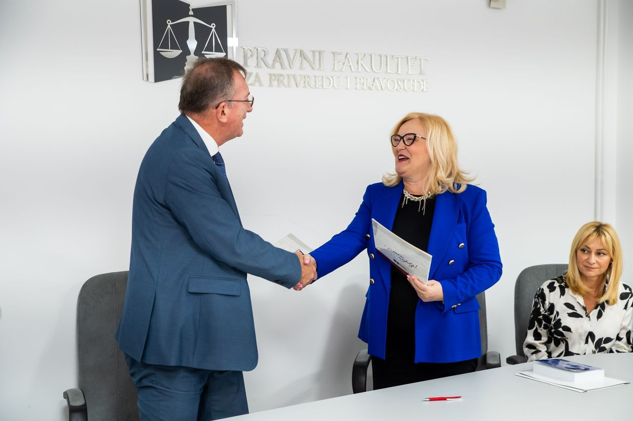 Prof. dr Milan Počuča, dekan Pravnog fakulteta za privredu i pravosuđe i Gordana Ristić, predsednica Privrednog suda u Novom Sadu potpisali su Sporazum o poslovno – stručnoj saradnji kojim je predviđena stručna praksa za studente u nekoliko ciklusa tokom godine. Na ovaj način studenti Pravnog fakulteta za privredu i pravosuđe će moći da stečeno teorijsko znanje primene u praksi i bolje se upoznaju sa procesnim pravom u ovoj oblasti.