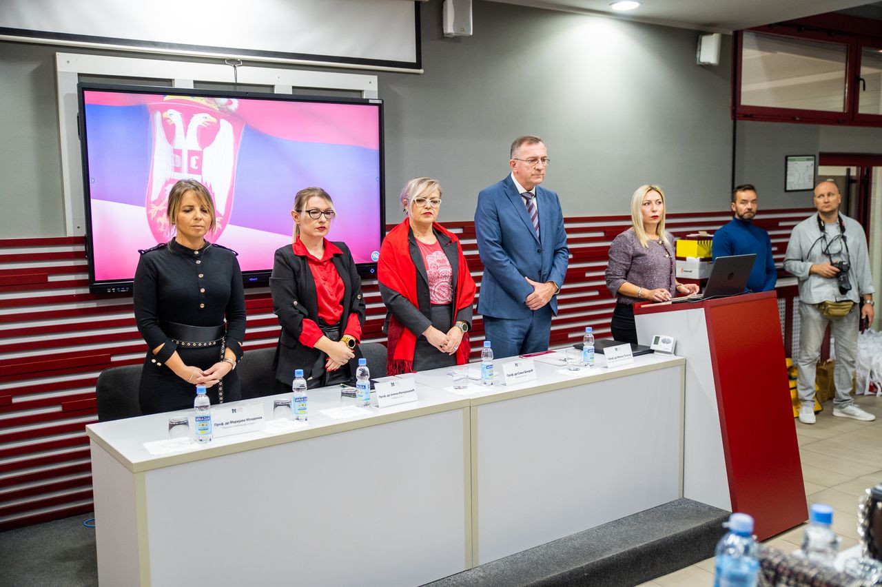 Nakon toga, prof. dr Milan Počuča uručio je priznanje i plaketu najboljoj studentkinji generacije 20/21. Jani Zečević, koja je na poklon dobila i laptop, dok je pohvalu za izuzetnost uručio studentkinji Heleni Mesaroš.