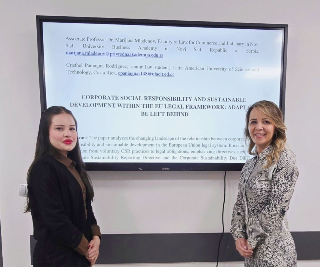 Studentkinja Fakulteta društvenih nauka Latinoameričkog univerziteta za nauku i tehnologiju iz Kostarike, Cristhel Paniagua Rodriguez, je uspešno realizovala tromesečnu mobilnost u svrhu učenja na Pravnom fakultetu za privredu i pravosuđe u Novom Sadu u okviru Erazmus+ projekta KA171.