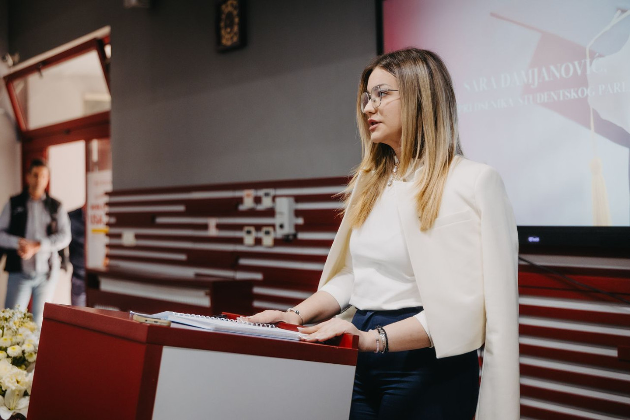 Nakon pozdravnih obraćanja studentima se obratila zamenica predsednika Studentskog parlamenta Pravnog fakulteta za privredu i pravosuđe, koja ih je upoznala sa radom parlamenta kao i aktivnostima koje Studentski parlament organizuje, kao i onima u kojima učestvuje.