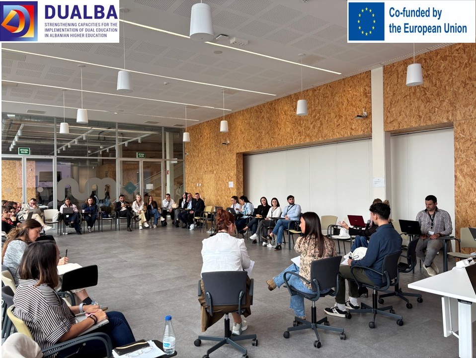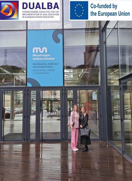 U okviru projekta „Jačanje kapaciteta za implementaciju dualnog obrazovanja u sistemu visokog obrazovanja Albanije – DUALBA“ u periodu od 23. do 25. Septembra 2025. godine realizovana je studijska poseta u organizaciji Univerziteta Mondragon u Bilbau.