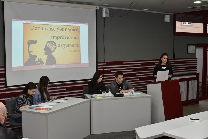 Kako bi studentima približili pravila i način debatovanja prvaci svetskog univerzitetskog debatnog prvenstva – Teodora Rešetar, studentkinja Filološkog fakulteta u Beogradu i Miloš Marjanović, student Pravnog fakulteta u Beogradu - podelili su u petak, 24. februara 2017. godine sa studentima Pravnog fakulteta svoja iskustva sa takmičenja u Holandiji, gde su u finalu debatovali sa studentima iz Nemačke, Kine i Indonezije i održali prezentacionu debatu na temu: „Ovaj dom bi prekinuo svako istraživanje koje ima za cilj otkrivanje samosvesne veštačke inteligencije“ protiv tima sa Fakulteta političkih nauka iz Beograda – Marte Vasić i Aleksandre Mihajlović. Pobednika su izabrali prisutni studenti.