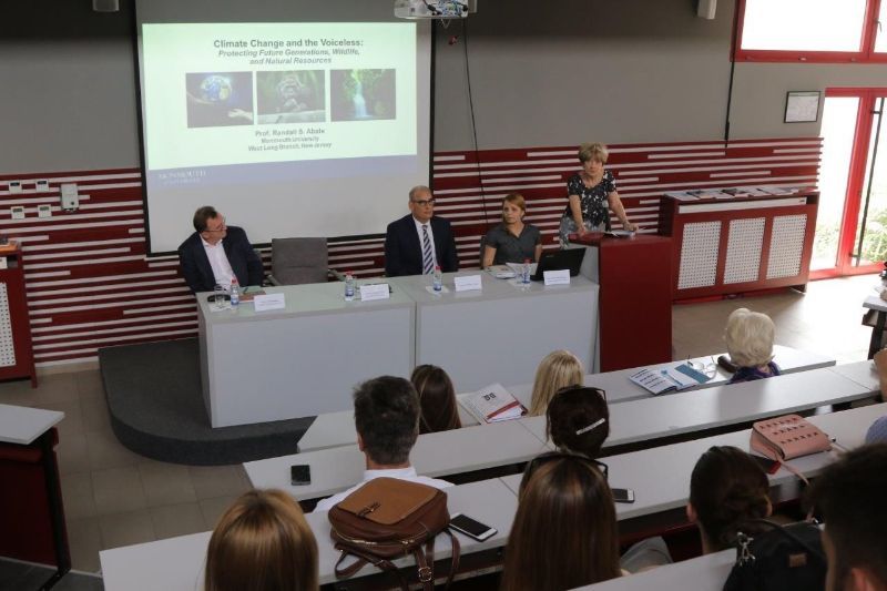 U Svečanoj sali Univerziteta Privredna akademija, pre samog predavanja, održan je sastanak kojem su prisustvovali prof. dr Marijana Carić, predsednica Saveta Univerziteta, profesor Randall S. Abate, prof. dr Milan Počuča, prodekan za nauku, kvalitet i razvoj i doc. dr Marijana Mladenov, prodekan za međunarodnu saradnju na Pravnom fakultetu za privredu i pravosuđe u Novom Sadu.