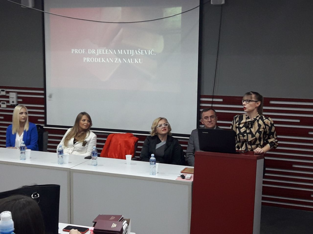 Prof. dr Marijana Mladenov, prodekan za međunarodnu saradnju govorila je o internacionalizaciji i mogućnostima koje studenti i studentkinje master studija Pravnog fakulteta za privredu i pravosuđe imaju kroz programe mobilnosti uspostavljene sa različitim visokoškolskim ustanovama iz celog sveta. Prof. dr Marijana Mladenov je naglasila da su im vrata Kancelarije za međunarodnu saradnju na Fakultetu uvek otvorena. Studentima i studentkinjama se obratila i Doc. dr Maja Petrović, prodekan za kvalitet i razvoj i tom prilikom istakla da se kvalitet Fakulteta ogleda u kvalitetu studenata.