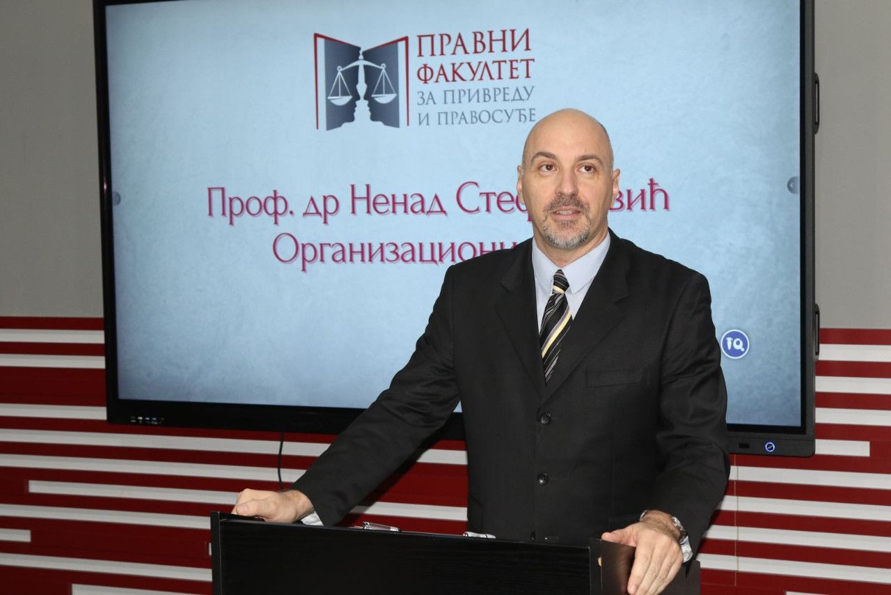 U ime organizacionog tima, obratio se prof. dr Nenad Stefanović, koji je istakao važnost ne samo kvalitetnog govora za sve pravnike, već i razumevanje zadate teme. „Današnji besednici, njih osmoro, prepoznali su koliki je značaj besedništva za jednog pravnika i prijavili se na takmičenje gde nije toliko važno pobediti, već učestvovati. Ja ne znam kakvi će oni biti pravnici, ali su odlični besednici.“ – istakao je prof. dr Nenad Stefanović i zahvalio se studentima na trudu, strpljenju i istrajnosti. Pored navedenog istakao je i da su za organizacioni tim svi takmičari pobednici, jer su u najboljem svetlu pokazali veštinu govorništva koju su razvijali kroz pripreme u trajanju od tri meseca. Organizacioni tim za takmičenje u besedništvu pored prof. dr Nenada Stefanovića, činile su doc. dr Maja Petrović, prodekan za kvalitet i razvoj, Tamara Krstić, direktor marketinga i PR menadžer Univerziteta Privredna akademija i Marija Sudar, profesor srpskog jezika i književnosti i urednica časopisa „Akademac“ Univerziteta Privredna akademija, a ove godine je organizacioni tim bio jači za još jednog člana i to prošlogodišnjeg pobednika ovog takmičenja, Danila Lučića.