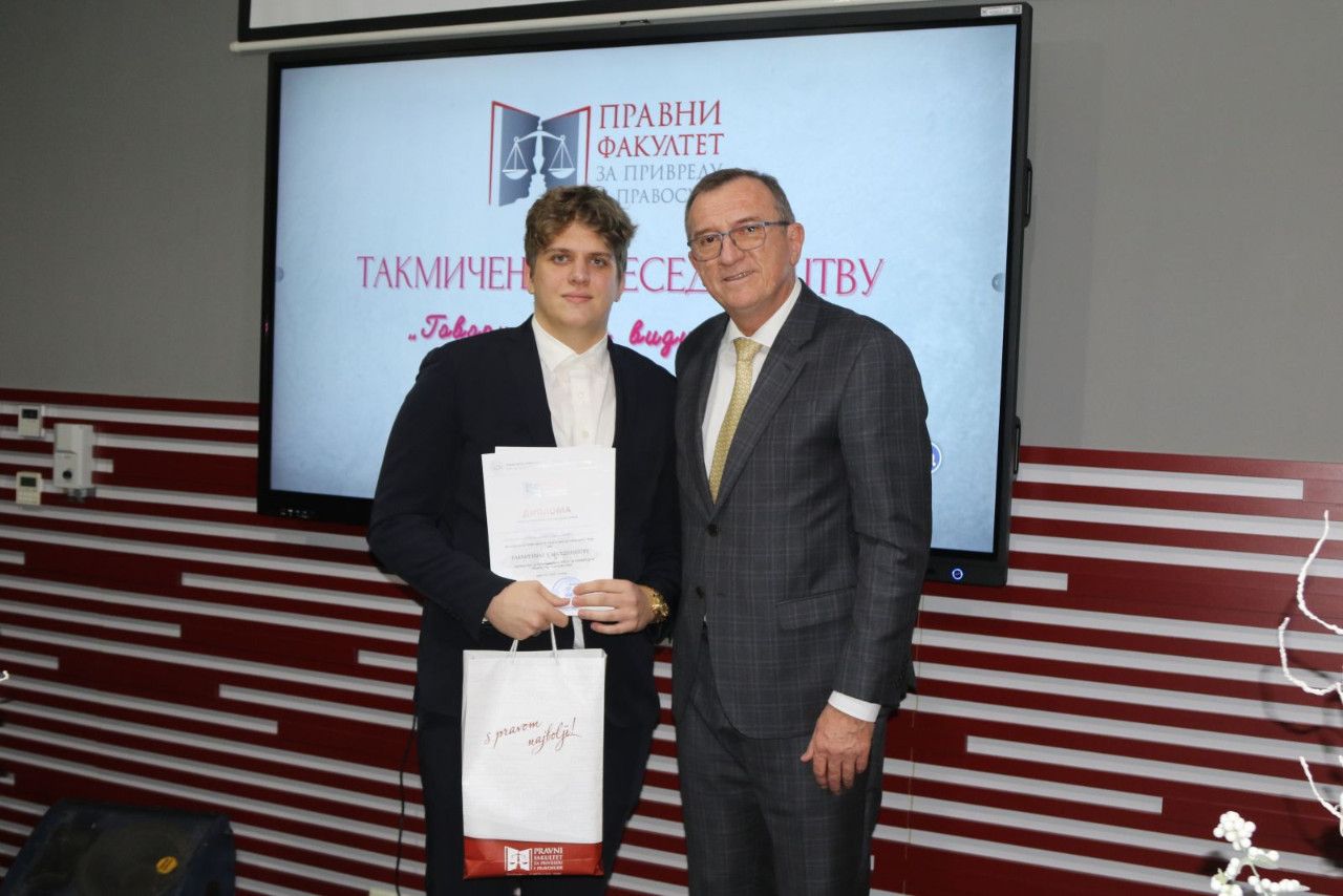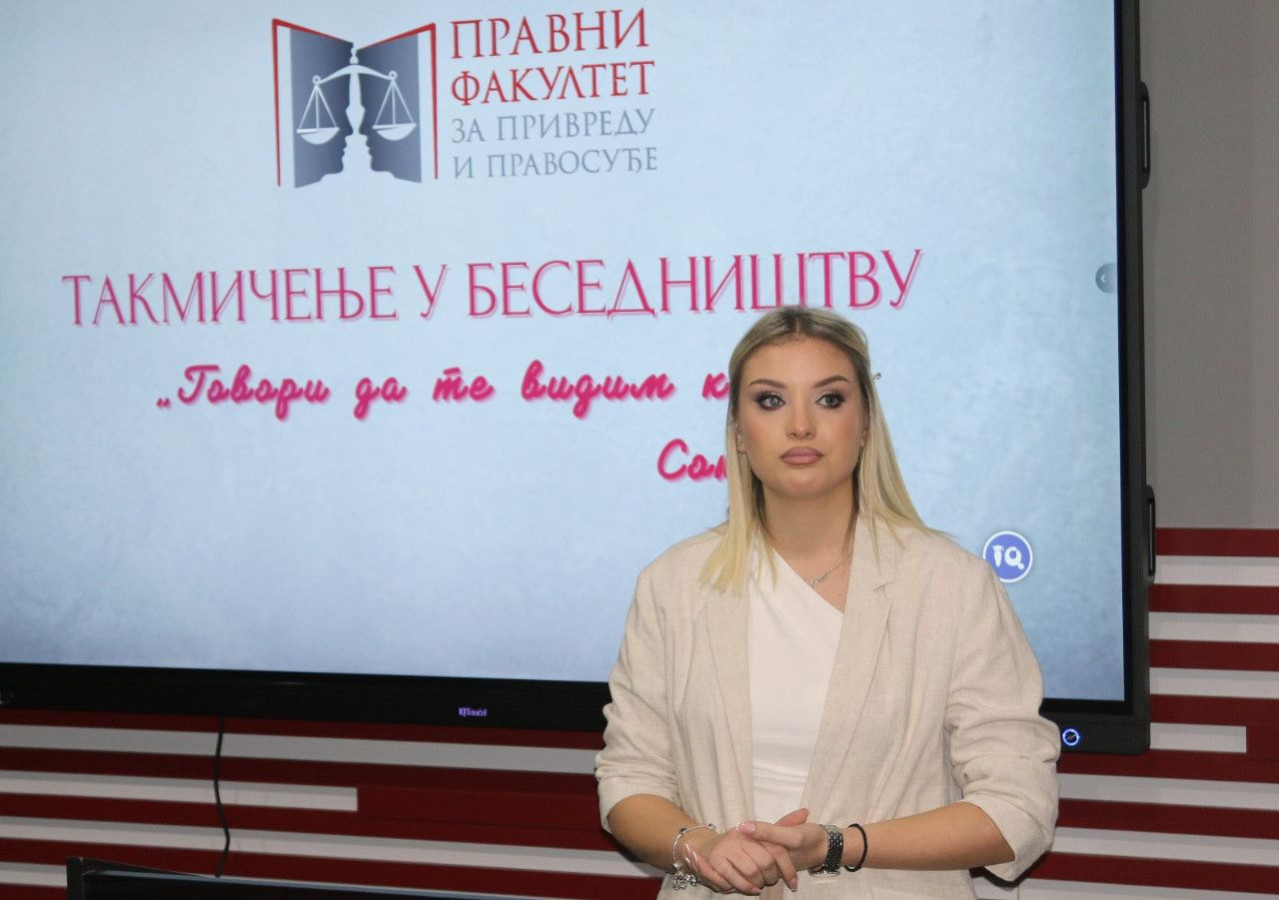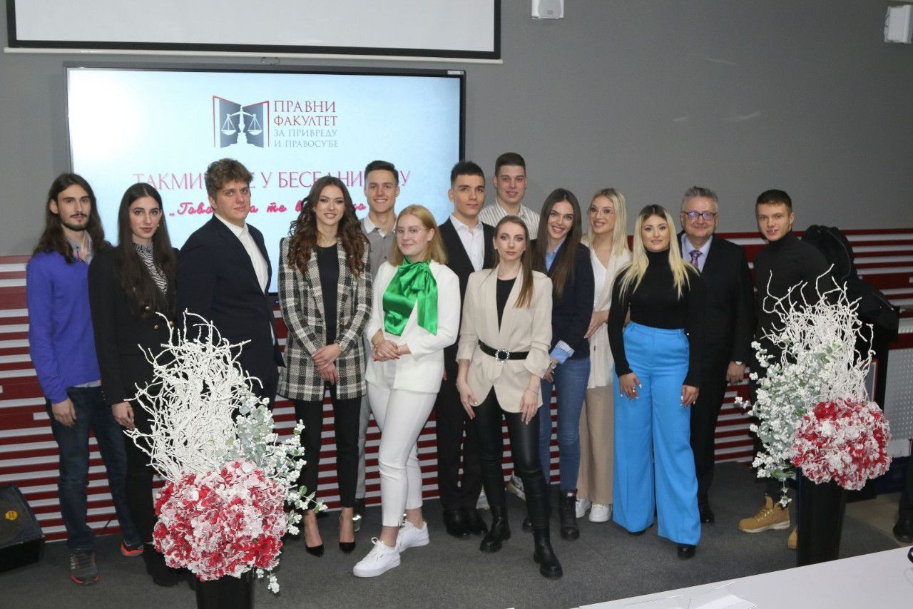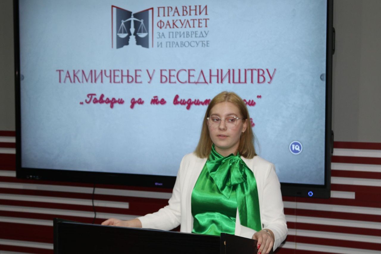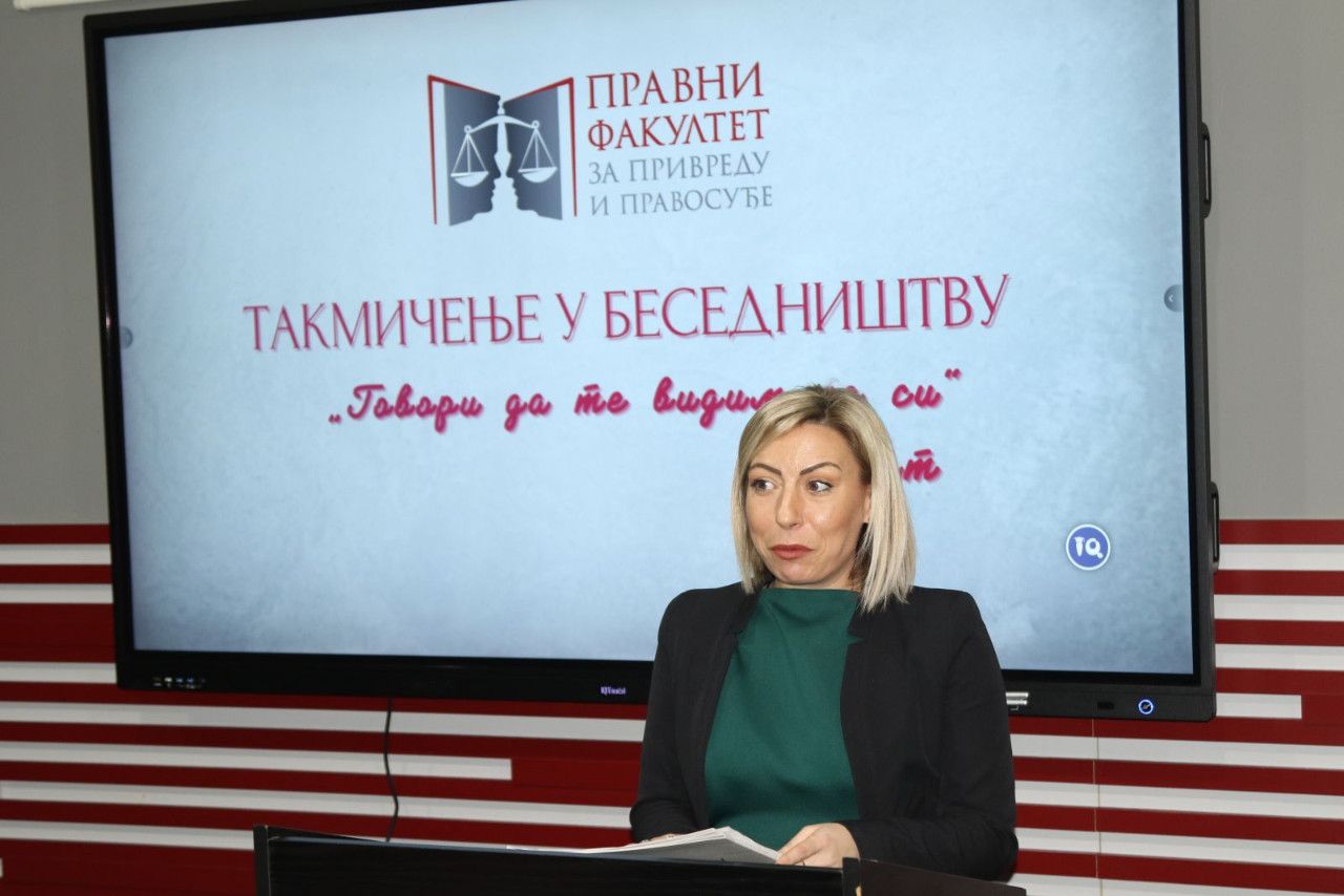 Prisutne je pozdravila i jedna od članica žirija sa izuzetno delikatnim zadatkom „odmeravanja“ i procenjivanja bezmalo jednako dobrih izlaganja bila je prof. dr Marijana Dukić Mijatović, državna sekretarka u Ministarstvu prosvete Vlade RS, koja je izrazila veliko zadovoljstvo mogućnošću da bude deo ovog uglednog takmičenja na jednoj visokoškolskoj ustanovi koja kao tradiciju ima takmičenje u besedništvu duže od jedne decenije. „Kao predstavnik Ministarstva prosvete mogu izuzetno afirmativno da se osvrnem na sam događaj i na učesnike, maturante i studente. I za jedne i za druge je od nemerljive važnosti negovanje oratorstva. Bez sistematizovanog znanja nema dobre besede, jer jedino tako možemo uveriti sagovornika u naše pravne, naučne, religijske i svake druge stavove. Zato besedništvo mora da se neguje, kao i tradicija, čitanje. Generacije novog milenijuma su vrlo vešte u digitalnoj tehnologiji koja nam je vrlo bitna i kojoj posvećujemo pažnju. Mnogo smo uložili i u digitalizaciju obrazovanje. Ali naš identitet, našu književnost, duh našeg naroda i besedništva treba negovati posebno kod mladih ljudi koji žele da se bave pravnom strukom, jer ovde se školuju buduće sudije, advokati, tužioci kojima je govor i reč alat u njihovom budućem zanimanju i primeni zakona“- izjavila je povodom ovog događaja državna sekretarka.