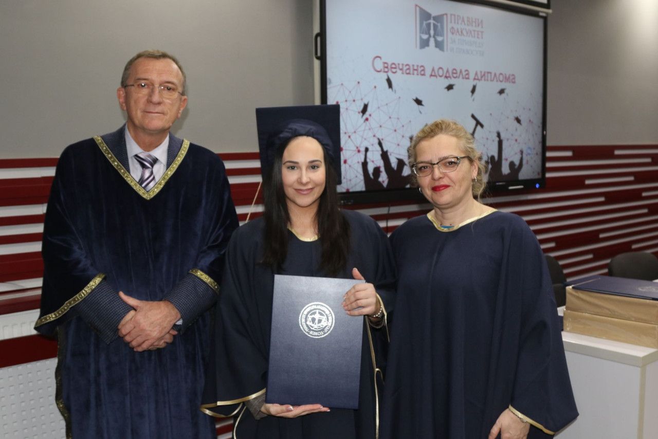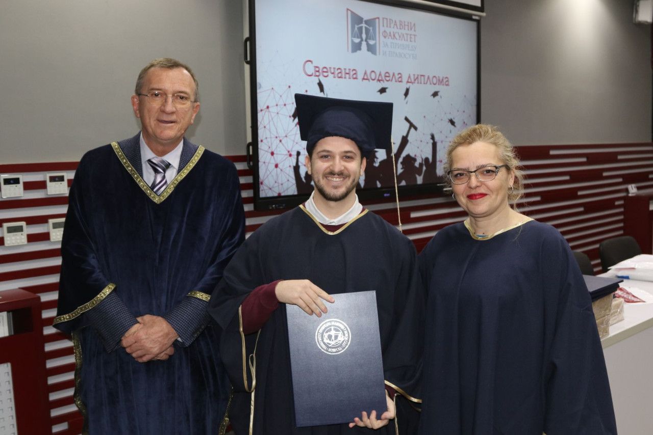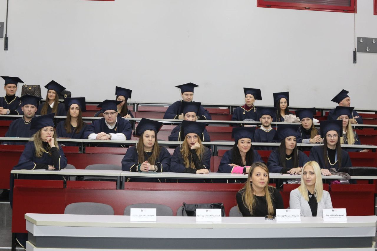 Nakon intoniranja univerzitetske himne „Gaudeamus Igitur“, diplomirane pravnike i njihove roditelje i prijatelje pozdravio je dekan fakulteta prof. dr Milan Počuča koji im je čestitao na uspešno završenim osnovnim akademskim studijama. Naglasio je da je iza njih dug i nimalo lak put koji su oni uspešno prešli, kao i da njihovi roditelji treba da budu ponosni.