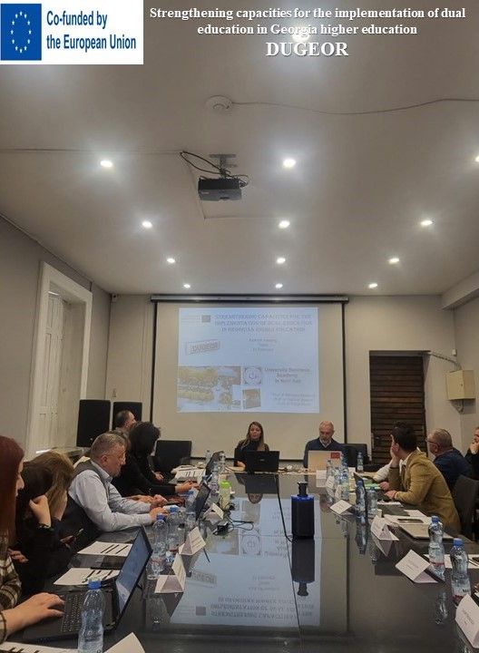 Reč je o projektu izgradnje kapaciteta u visokom obrazovanju (CBHE) kategorije 3 čiji je cilj podržavanje napora Gruzije kao treće zemlja koja ne učestvuju punopravno u Erazmus programu, da kroz implementaciju dualnog obrazovanja u okviru sistema visokog obrazovanja odgovori društvenoekonomskim potrebama i obezbedi strukturno poboljšanje i inovacije u sektoru visokog obrazovanja. DUGEOR projekat će biti realizovan u periodu 2023-2027 godine, a konzorcijum čini 16 institucija: Univerzitet u Novom Sadu (koordinator projekta), Univerzitet primenjenih nauka FH Joanneum (FH Joanneum Gesellschaft MBH), Univerzitet kooperativnih studija Baden-Virtemberg (Duale Hochschule Baden-Wurttemberg), Univerzitet Privredna akademija u Novom Sadu, Gruzisjki institut za javne poslove (Georgian Institute of Public Affairs), Univerzitet za navigaciju u Batumiju (Batumi Navigation Teaching University), Državni univerzitet Iakob Gogebašvili Telavi (Iakob Gogebashvili Telavi State University), Državna pomorska akademija Batumi (Batumi State Maritime Academy), Gruzijski tehnički univerzitet (Georgian Technical University), Vengo grupa (Vengo Group), Šumi vinarija (Wine Company Shumi), Interlog (INTERLOGGEORGIA), Wilhelmsen kompanija u Gruziji (Wilhelmsen Ships Service Georgia), Ministarstvo za obrazovanje i nauku Gruzije (Ministry of Education and Science of Georgia), Nacionalni centar za unapređenje kvaliteta obrazovanja Gruzije (National Center For Educational Quality Enhancement) i Nacionalna agencija za šumarstvo (National Forest Agency). Tokom dvodnevnog sastanka u Tbilisiju učesnici su razgovarali o institucionalnim, strateškim i društvenim aspektima implementacije projekta DUGEOR, kao i o njihovim glavnim zaduženjima u okviru projekta. Projektni tim DUGEOR Univerziteta Privredna akademija u Novom Sadu čine prof. dr Vladimir Medović, prof. dr Sanja Škorić, prof. dr Marijana Mladenov i mast. krim. Tamara Staparski.