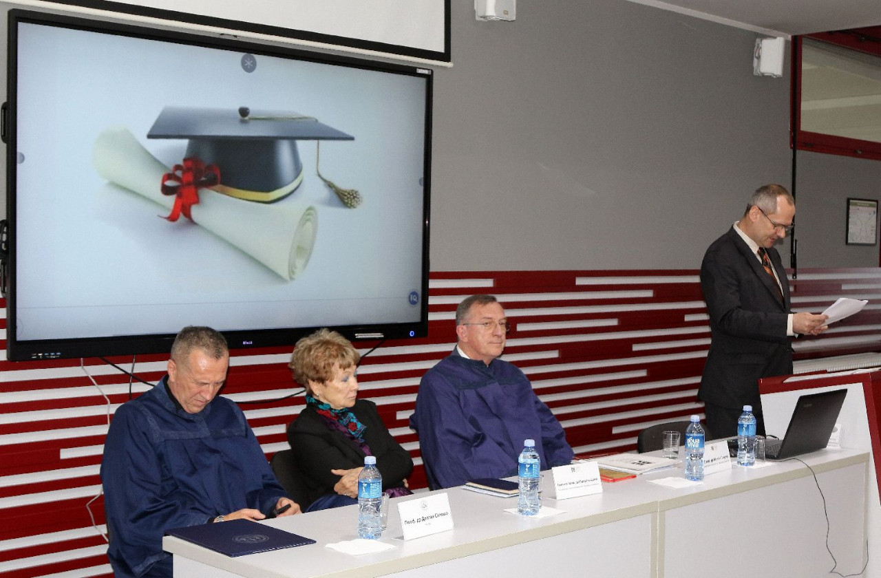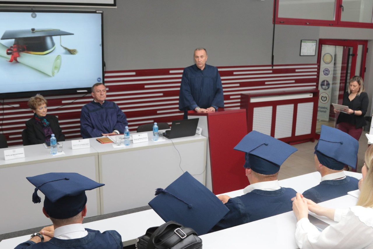 Sve prisutne pozdravili su prof. dr Marijana Carić, predsednica Saveta univerziteta, rektor Univerziteta Privredna akademija u Novom Sadu, prof. dr Dragan Soleša i prof. dr Milan Počuča, prorektor za nauku Univerziteta Privredna akademija i dekan Pravnog fakulteta za privredu i pravosuđe u Novom Sadu. Svakog kandidata, kao i naučne doprinose disertacija, predstavili su njihovi mentori. Nakon predstavljanja rektor Univerziteta, prof. dr Dragan Soleša, svečano je uručio diplome i promovisao kandidate u doktore nauka.