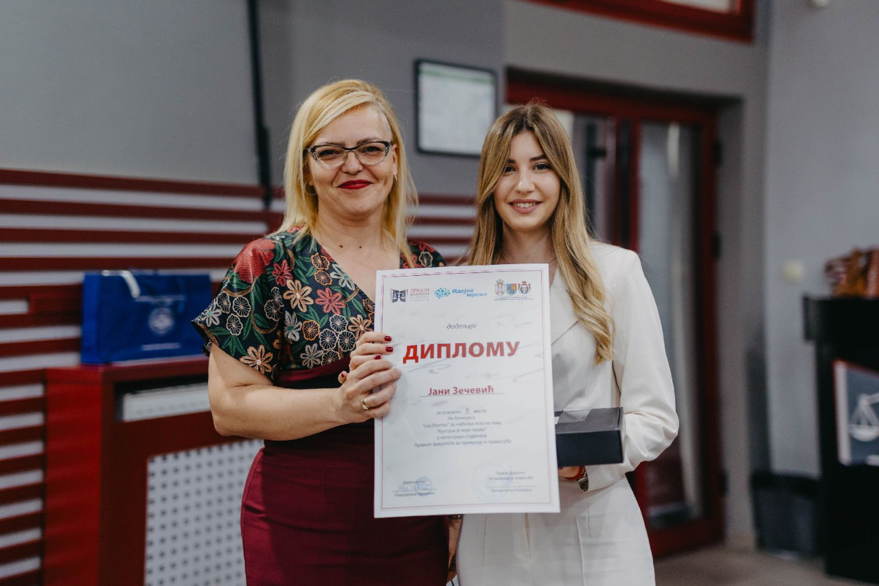 U kategoriji studenata Pravnog fakulteta za privredu i pravosuđe prvo mesto osvojila je Biljana Milenković, studentkinja četvrte godine, na drugom mestu našla se Jana Zečević, dok je treće mesto zauzela Mirjana Korov. Specijalne nagrade uručene su: Jeleni Mladenović, Uni Vukadinović i Sanji Todić, a specijalne pohvale Stefanu Tasiću, Tamari Filić, Petru Pavloviću, Nebojši Vukovu i Anastasiji Tasić. U kategoriji maturanata najbolji esej napisala je Jelena Žakula iz Nadalja, drugo mesto je osvojio esej Maše Stojanović, dok je treća nagrada otišla u ruke Koste Petrovića.