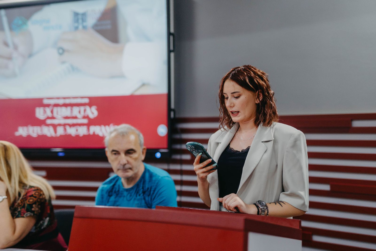 Prof. dr Sanja Škorić istakla je da se glas kulture i te kako čuje i da je mladi prenose, kao i da je uz izuzetno interesovanje studenata i maturanata za učešće ,,Lex Libertas'' realizovan po treći put u saradnji sa udruženjem ,,Idejna mreža."