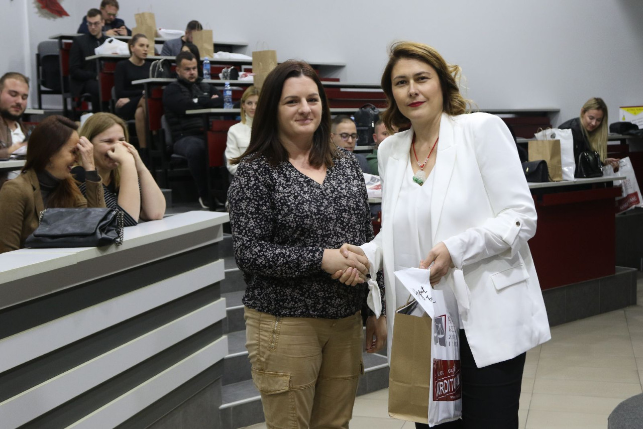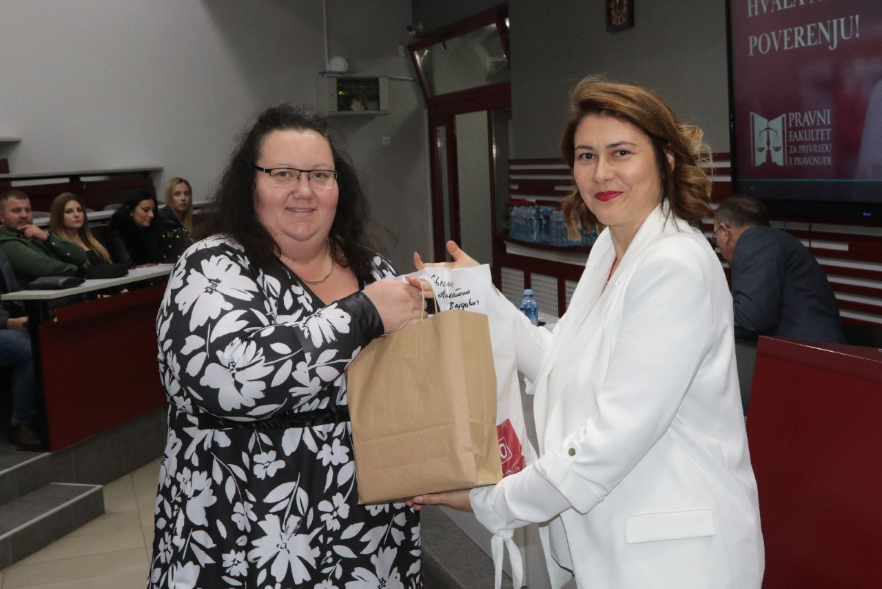 Nakon toga, studentima su se obratile dve alumnistkinje Pravnog fakulteta za privredu i pravosuđe u Novom Sadu: Tatjana Žuža, Viša savetnica za odnose sa državnim institucijama u kabinetu guvernera NBS i Dijana Lukić, HR menadžerka u kompaniji GLOBALCOM.
