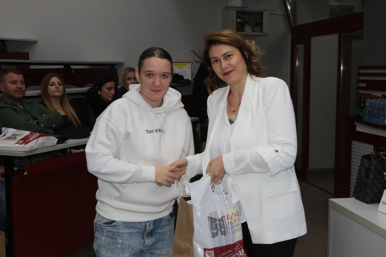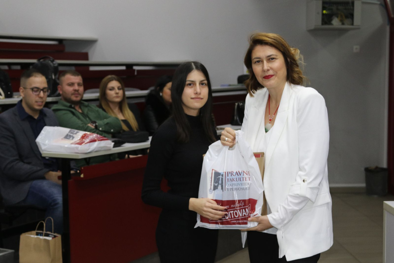 Master studente pozdravila je i prof. dr Jelena Matijašević, prodekanka za nauku koja je studentima ukratko objasnila važnost nauke i znanja, a akcenat je stavila na naučni časopis “Pravo-teorija i praksa”.