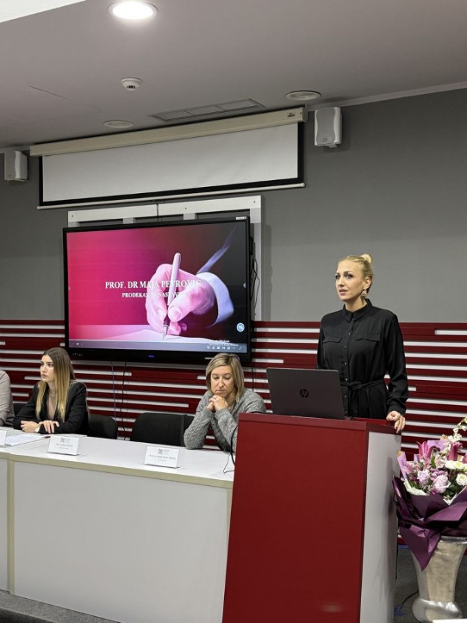 U ime rukovodstva Fakulteta obratila se i prof. dr Maja Petrović, prodekan za nastavu, koja je studentima predstavila studijske programe na drugom stepenu studija i naglasila važnost pažljivog izbora izbornih predmeta u skladu sa ličnim interesovanjima i profesionalnim ambicijama. Osvrnula se i na značaj proaktivnog pristupa studijama, kao i na podršku koju Fakultet pruža studentima u procesu obrazovanja i stručnog usavršavanja.