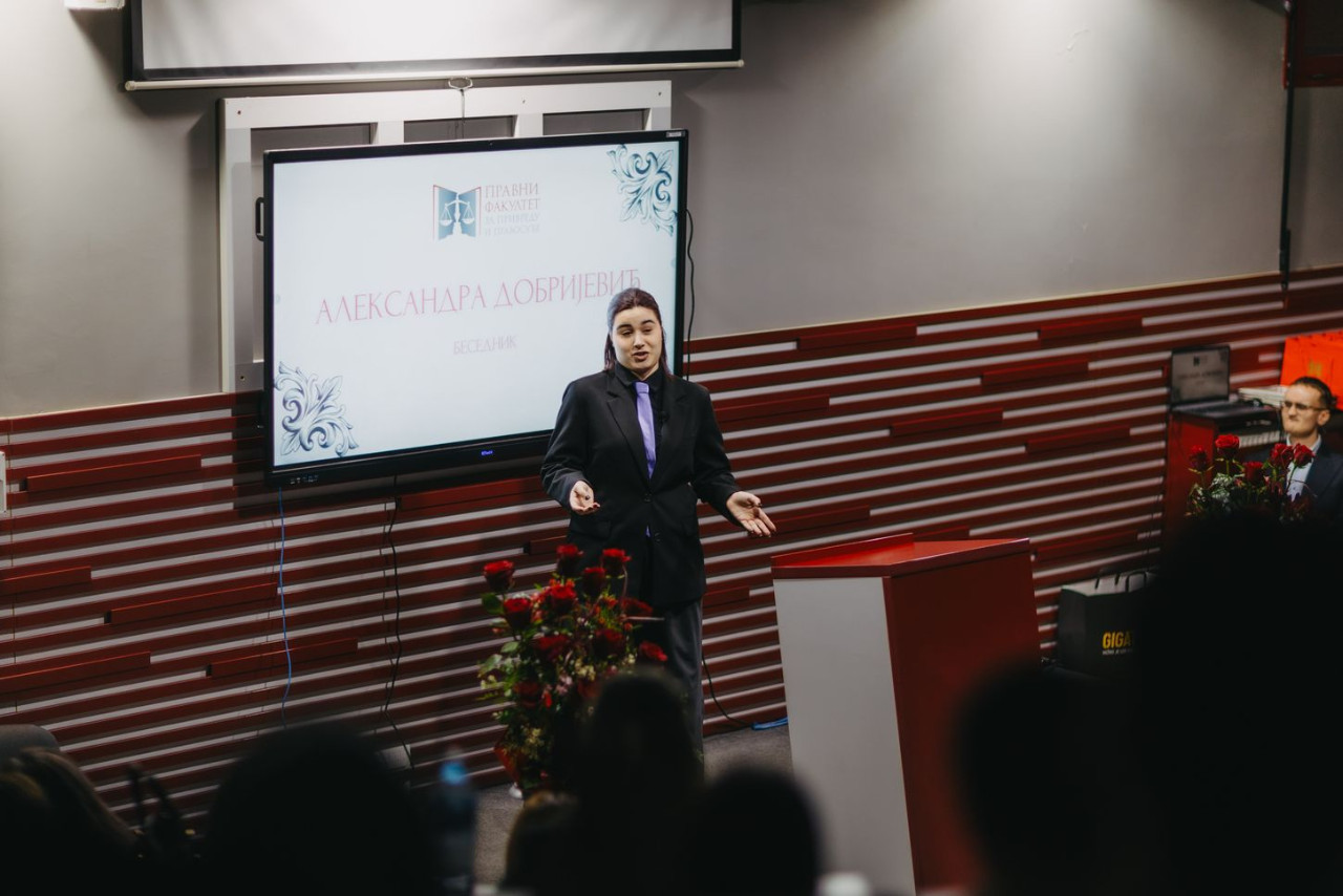 Prisutne je pozdravila prof. dr Jelena Stojšić Dabetić, dekan Pravnog fakulteta za privredu i pravosuđe, dok se u ime organizacionog tima, obratio se prof. dr Nenad Stefanović, koji je istakao važnost ne samo kvalitetnog govora za sve pravnike, već i razumevanje zadate teme.