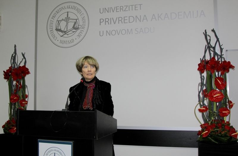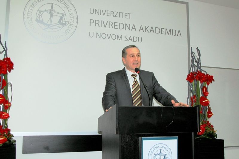 Uvod u proslavu velikog uspeha Univerziteta Privredna akademija bila je promocija monografije "Titula advokat oduzima mi pravo na strah - moje završne reči" autora dr Veljka Delibašića, poznatog advokata iz Beograda. Pored autora, o aktuelnim temama i problemima pravosuđa u Srbiji danas govorili su Dragoljub Đorđević, predsednik Advokatske komore Srbije, Srđan Sikimić, predsednik Advokatske komore Vojvodine i prof. dr Željko Bjelajac, predsednik Saveta Pravnog fakulteta, a u prisustvu velikog broja eminentnih stručnjaka iz oblasti prava. Čast da održi prvo predavanje u novom amfiteatru pripala je Majklu Davenportu, šefu Delegacije Evropske unije u Srbiji, a na temu „Pozicija Evropske unije u pristupnim pregovorima sa Srbijom". Njegovo predavanje došlo je u pravom trenutku, kao ohrabrenje Univerzitetu i fakultetima da učvrste svoje pozicije na evropskoj akademskoj mapi.